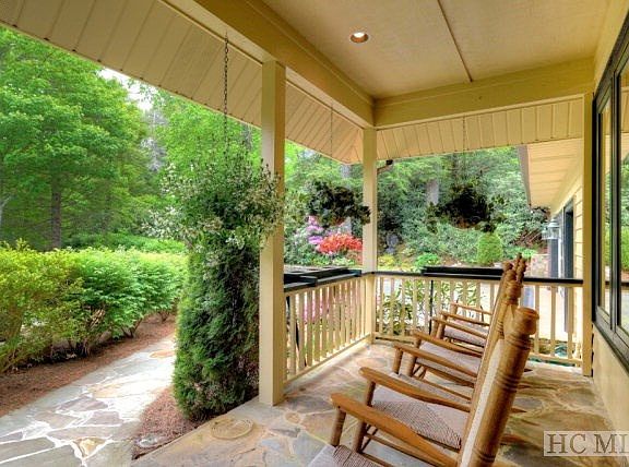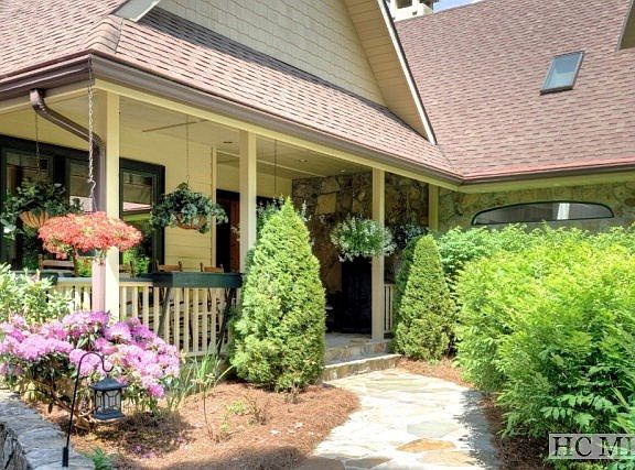 Immaculately cared for home in Highlands Falls Country Club. Original owners have taken extraordinary care of their home. Sitting on a corner lot with a great mountain view, the home is very private and has a lovely water feature along the side of the driveway with low maintenance yet beautiful landscaping. A rocking chair front porch greets your guests. As you step inside, to the left of the foyer is a wood paneled office or den which is lined with bookcases. The living room boasts high wood ceilings with beautiful beams, a stone fireplace, wet bar and opens to two large covered, screened porches. The gourmet kitchen features a large island and a gazebo shaped eating area. Between the kitchen and the dining room is a butlers pantry. The lower level has a large family room with a corner fireplace, two guest suites which open to the lower deck and a bunk room with a half bath. Above the garage is a play room with a pool table and wonderful storage. The home is being offered fully furnished. Just bring your toothbrush and golf clubs. Social or Golf Membership in Highlands Falls is available with approval of the buyer but is optional. Highlands Falls has special membership purchase rates for buying on campus.
