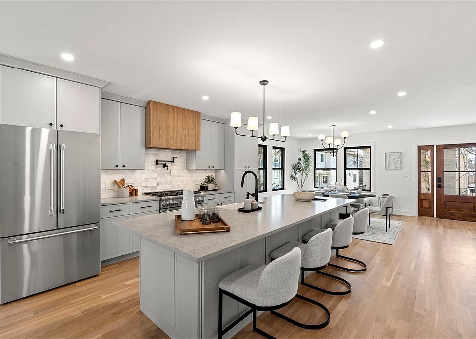 This exquisite single-family home has undergone a comprehensive and thorough renovation, resulting in a luxurious living experience. Featuring four spacious bedrooms and three and a half elegantly designed bathrooms, this property is an epitome of modern sophistication. Boasting high-end finishes throughout. From gleaming white oak hardwood floors to custom cabinetry and state-of-the-art Thermador appliances, every detail has been thoughtfully considered. The open-concept layout, combined with expansive living and dining areas, creates an ideal environment for hosting gatherings and social events. On the second level, you'll find three bedrooms featuring a primary with soaring ceiling height, combined with a beautiful en suite, and a large family room with an abundance of natural light. The meticulously finished basement adds an extra layer of versatility to the home - designed for entertainment, a home office, and a gym, providing ample space for productivity and relaxation.