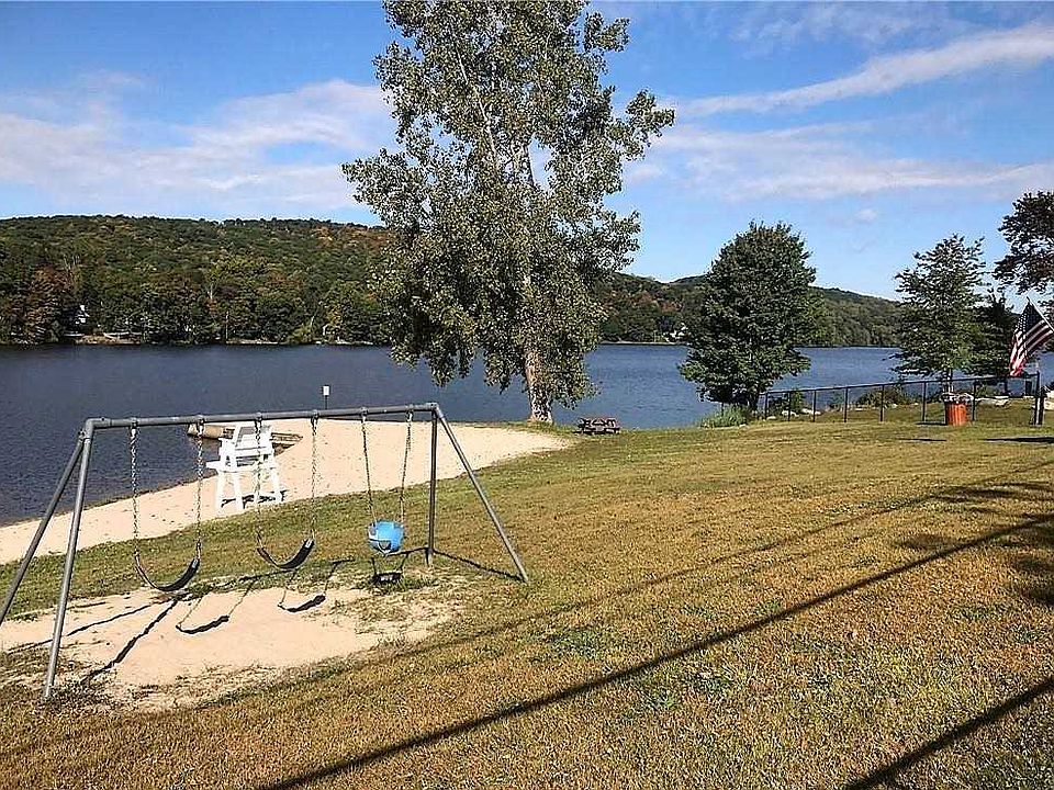 Walk to the beach! Unique layout, not your average home in Lake Carmel. Very efficient home cooler in summer and warmer in the winter since the kitchen is in the lowest level. Two bedrooms with several other rooms that can used as a den, office or play area or even a craft room. Hardwood floors, Recently painted, new flooring. Separate laundry and utility room with plenty of storage. New drainage. Above ground oil tank. Septic tank and fields updated. Private corner lot with patio and water view through the evergreens. Subtract $1341 for STAR. Walk to Beach, Basketball Court and walking path. FULLY AVAILABLE!