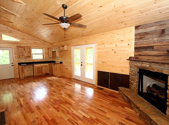 BRAND NEW CABIN built for you! This 1 bed, 1 bath cabin shines in every way! Beautiful D Log siding, copper penny metal roof, great covered front porch to enjoy your days, & a large crawl space for storage and access. Inside is a an open floor plan! Plenty of glass lets in lots of natural light into the spacious great room. Custom stone fireplace accents, kitchen with beautiful cabinets and granite countertops, hardwood floors, T&G wood throughout, central HVAC, and a spacious bedroom w/ walk-in closet. Beautiful wooded lot in a quiet setting. Multiple under construction to see. 3 more plans to choose from! 2 2/1's (768 & 864 square ft) and a 2/2. Contact us today for more info!