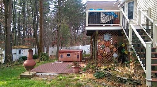 Seller will entertain all offers. This is a grand and cozy colonial on a quite cul-de-sac with large front and back yards. This gorgeous home has an open floor plan with high ceilings, 2,424 square feet of living space and a big entrance that is balanced with cozy rooms and nooks, including a three season porch/sun room with gas stove off the large family room that centers itself around an over sized fireplace. Lots of windows, good light and entertaining space, two bedrooms plus master bedroom with big walk in closet and master bath with jacuzzi. Additional full bath upstairs and half bath downstairs with side by side washer and dryer in the closet, large deck off the spacious kitchen, front porches, dining room, entertaining/living room, attached two car garage and hot tub on back deck. This home is also close to 93, local dining, shopping and country club.