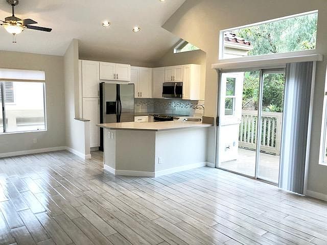 Newly remodeled, highly upgraded, 2 bed 2 bath condo in Laguna Niguel. The new chef-style kitchen has sleek, new white cabinets, new quartz counter-tops, custom marble and glass tile backsplash, new porcelain wood tile flooring, new stainless steel sink and faucet, and a breakfast bar. The wood tile flooring continues throughout the house. Completely remodeled bathroom with new cabinet, new quartz countertop, and new shower area. Cool ocean breeze fills the air in this bright and elegant home. Walking distance to George White Elementary School, an award-winning school in Capistrano District. The home also features: * New blinds throughout the house * End unit, perfect location backing the green belt for increased privacy * No neighbors upstairs or downstairs * Central A/C and Heat * Beautiful balcony overlooking the green belt * Master bedroom with balcony * Attached one car garage located downstairs and the living space is located upstairs * Light and bright home with high cathedral ceilings * Pool, Spa, Tennis Courts * Gas fireplace * Stainless Steel built appliances including a Refrigerator, Washer and Dryer. * Close to great Shopping, Dinning and Entertainment * Walking distance to Parks and to Hiking Trails to the Beach Owner pays for association, trash, gardening.