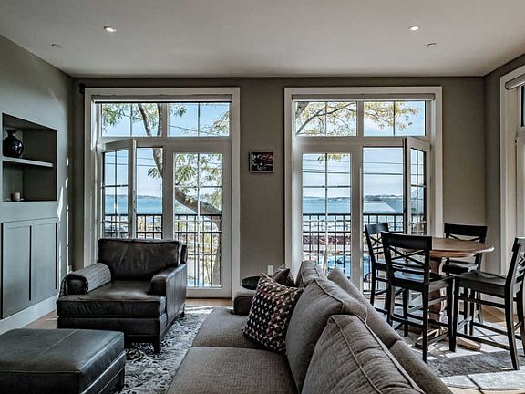 Watch the cruise ships come and go in style overlooking Portland's desirable East End waterfront from this luxury condominium! 31 Fore Street is a beautiful shingle style contemporary built in 2017 with only 4 exclusive units. This 1st floor unit boasts dramatic ocean views with walls of windows & french doors allowing natural light and salty ocean breezes into the living space. Stunning designer finishes throughout, gorgeous kitchen/living area with gas range, gas fireplace & Hunter Douglas motorized smart cellular shades, large Master with 2 custom built-in closets, luxurious bath with tile shower & radiant heat, efficient heat pumps for heat/AC, laundry room with built-in storage, private balcony, elevator and deeded parking in secure garage on site. A stone's throw from all the award-winning restaurants and shops the Old Port has to offer and easy access to 295. Pet-friendly association.
