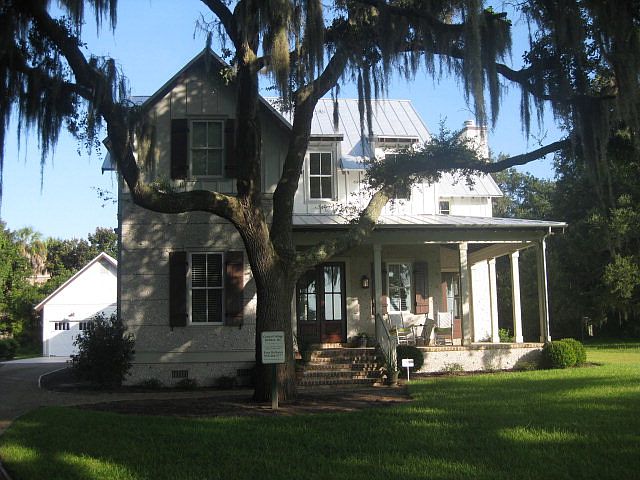 Beautiful coastal home in desirable Frederica Oaks!! Open floor plan with two story great room and foyer. Unique interior finishes and oak flooring give the home a distinct beach feel so popular on St. Simons Island. The large kitchen has floor to ceiling cabinets with Carrara marble counter tops and an huge island for working and entertaining. The tabby real-wood fireplace is the centerpiece of the comfortable living area. The master suite is on the main level and also an extra bedroom/office/den with a full bath and a small office. Upstairs are two additional bedroom suites. The covered back deck is inviting for outdoor entertaining or relaxing. Watch the sunrise over the marsh from the rocking-chair front porch!