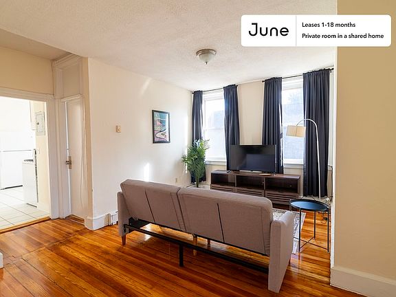 Queen bedroom in a 3 bedroom / 1 bathroom apartment! This Queen room in Jamaica Plain is available on a 12 month lease or a flexible short term (31 to 364 days) lease. You pick your custom start and end date. Monthly rent rate is determined by furnishing preference, move-in date and move-out date. Speak to a June representative for recommendations on the best stay duration for the lowest rate. Amenities of this home: Street parking - City permit required, 32-inch Flat-Screen TV, Guarantors Allowed, Wi-Fi - Paid separately (High-Speed), Furnished Common Areas, Hardwood Flooring, Microwave, Oven, Refrigerator, Heating | Baseboard Gas heating, also, this unit is conveniently located, several local parks, restaurants and bars are just minutes away. About June Homes: Welcome to the easiest rental experience of your life. Rent furnished or unfurnished apartments on a 12 month lease or a flexible short term (31 to 364 days). As a resident, you'll have access to 24/7 support and monthly cleanings of the home's shared spaces. Sign up now to apply online for your next home with June. Brokers welcome! Contact us for more details. Kindly note that the minimum stay duration would be 31 days. Use this listing ID when speaking to June team: #1769 A