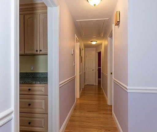 Beautifully maintained EXPANDED SPLIT ENTRY HOME in FOXHILL.Gorgeous HARDWOOD FLOORS throughout the main level.LIVING ROOM with brick fireplace, 2 closets,bow window and 2 closets.Freshly painted throughout! Master bedroom with newer half bath.Ceiling fan and tile floor.Two additional bedrooms with ceiling fans and possible 4th bedroom or separate Dining Room.Main floor bath with ceramic tile tub/floor. Open floor plan KITCHEN with loads of upgraded cabinetry, built in china cabinet,granite counter top 2 sliders to over sized deck and private fenced yard with paved hockey/play area. First floor laundry with full bath. Lower level nicely finished with storage closets, new 3/4 ceramic bath and walk out to yard. NEW..NEW upgraded multi zoned FHW GAS HEATING SYSTEM and GAS HOT WATER HEATER, IRRIGATION SYSTEM w double water meters, CENTRAL AIR CONDITIONING, 200 AMP CB electric panel. Large 2 car garage with work sink, new door opener and shelving. Easy access to Park/ Train/ bus!