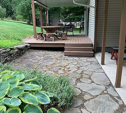 This updated and spacious house and yard will meet all of your living, entertaining and storage needs. 5 bedrooms and 2 full baths with a 2nd floor laundry make living easy. The 2 story garage has an upper level that can be accessed from the back yard where you will also find and updated playhouse in this yard that could be great for games, flower beds or even a garden. There is storage available everywhere, have your cup of coffee in the morning on your private deck off of the main bedroom or sit on the covered patio .