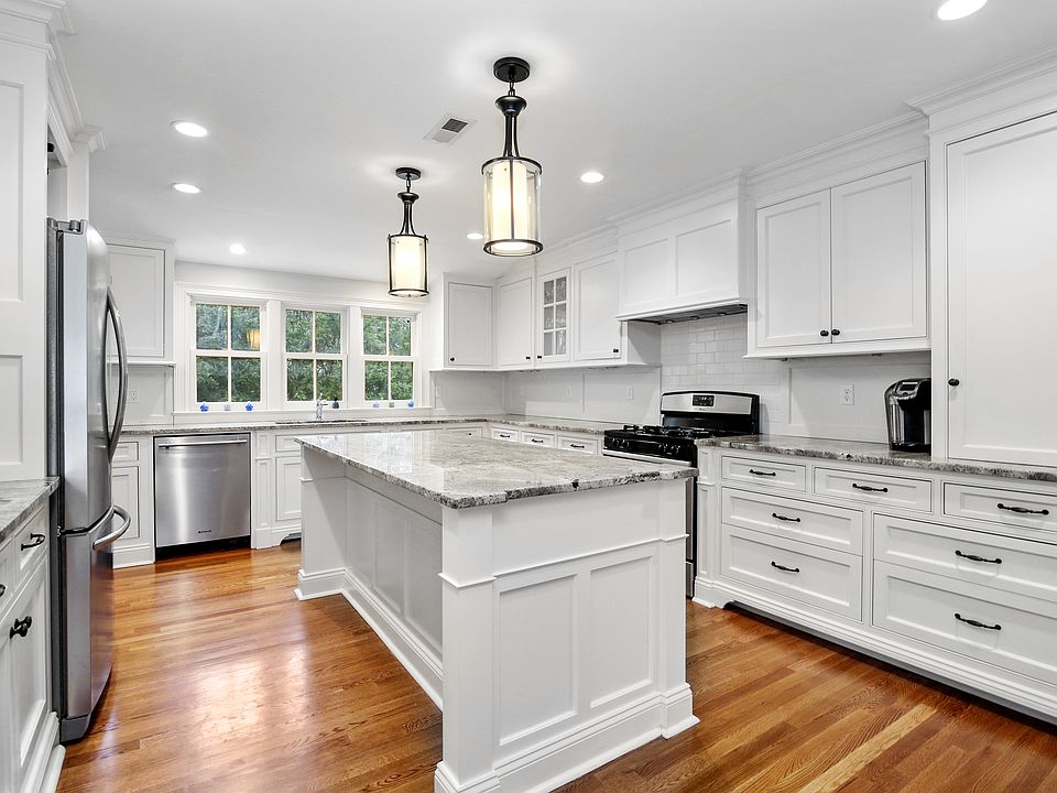 A remarkable home! This is the white kitchen you've dreamed of having with custom millwork cabinetry, stainless steel appliances, a huge island, and granite countertops. You will be amazed at the quality and the details. The open-concept floor plan is perfect. Hardwood floors. Gas fireplace in the living room, large dining space and easy access to your deck for grilling and entertaining. All bathrooms are updated and have marble countertops. This home was fully renovated top to bottom just 4 years ago. Features include a 4-year-old roof, tankless hot-water heater, heated/cooled finished full basement on its own zone, 2 car garage, mudroom, large laundry room. Outside there is a level lot with a sizable and private backyard with firepit and shed. The landscaping includes hydrangea and other perennials. Virtual and in-person showings are available. Call right now! Don't miss this home.