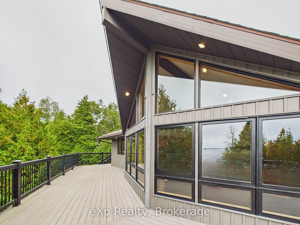 Welcome to 31 Goderich Point Loop, Northern Bruce Peninsula, a stunning waterfront sanctuary that guarantees exceptional privacy and showcases the beauty of nature. Nestled on a generous lot with crystal-clear waters and a private dock, this property is perfect for accommodating your watercraft, including larger boats, thanks to its ample depth. Constructed in 1996, this two-story residence encompasses four spacious bedrooms and three bathrooms, along with a walkout basement featuring multiple entrances. At the heart of the home lies a magnificent stone fireplace that enhances the inviting atmosphere throughout the space. The interior is adorned with exquisite wood finishes, while expansive windows allow an abundance of natural light and offer breathtaking views. Step outside onto the composite wraparound deck, ideal for entertaining or simply savoring the mesmerizing sunsets. A long driveway leads to the home, enhancing its secluded feel, while the double-car garage provides added convenience. Whether you're relishing a tranquil morning by the water or hosting gatherings with friends and family, this property is thoughtfully designed for relaxation and connection with the surrounding natural landscape.
