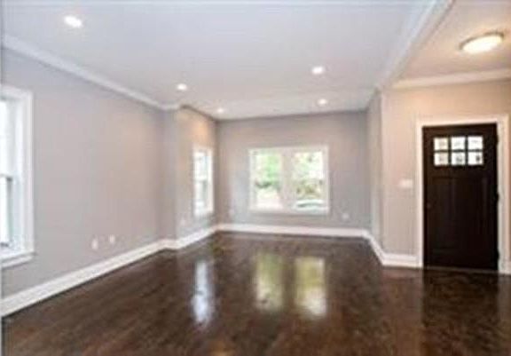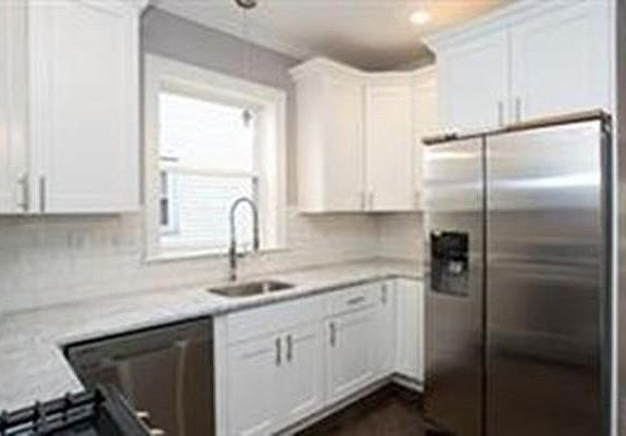 New remodeled development! This modern gut renovation yields 1 master bedroom with an attached full bathroom. Open concept living/dining area with a 1/2 bathroom off it. There is no lack of sunlight with large windows in master bedroom, kitchen, and open living/dining room. Carrara marble counter-tops, Samsung high end appliances. Navien water heater, with hydro air system for HVAC. New alarm system. Enjoy the suburban feel in the green backyard with parking for 1-2 cars.
