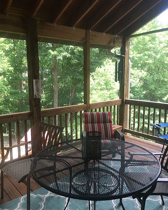 Daylight finished basement with living quarters and kitchen. 2 covered porches. Walk in closets. 2 gas log fire places. Large stone firepit area with built-ins.