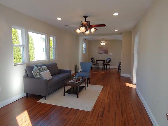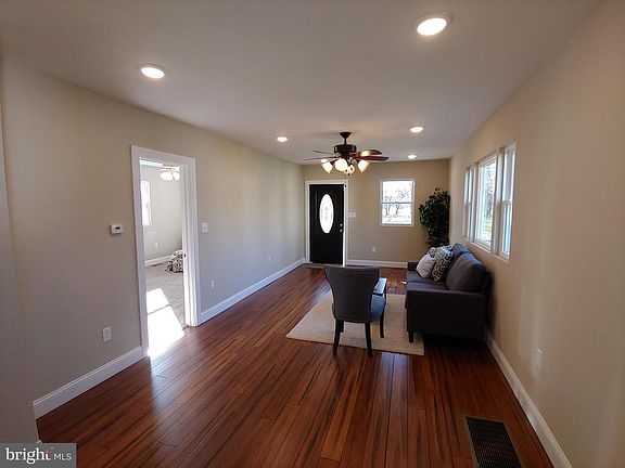 MONSTER GARAGE! Don't wait to see this totally RENOVATED Rancher w/2+ car, oversized detached garage. Large, brite and open concept living room/dining room combination leads into gorgeous eat-in kitchen that has been given the designer treatment. Upgraded, hardwood flooring runs thru-out, tons of recessed lighting. Kitchen features: raised panel white cabnetry, soft close drawers, granite countertops, undermount sink, peninusla island/bar, pendant lighting, subway tile backsplash, stainless steel appliance package. 3 nicely sized bedrooms - all with new upgraded carpeting and ceiling fans. 2 upgraded FULL baths with new vanities, ceramic tile flooring, new tub & decorative ceramic tile tub surround. NEW Vinyl Siding. NEW Windows. NEW Central Air. Newer Heater. NEW Asphalt Driveway leads to a MONSTER GARAGE w/separate electrical panel, oversized 2+ car w/additional room which could be used for storage, office, workshop - possibilities are endless! Cute covered front porch w/recessed lighting. Close to the hospital, major roads, Joint Base MDL, schools, shopping, restaurants. Hurry, hurry, hurry! Will not last long!