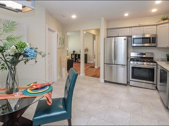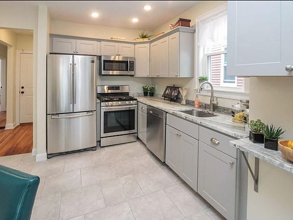 Calling all first time homebuyers and investors! Pristine and spacious three bedroom, one bathroom condo with private deck and storage. This was a 2018 gut renovation down to the studs. The modern kitchen comes equipped with GE stainless steel appliances, room for a small dining table and a storage closet with stackable washer and dryer. High efficiency appliances, tankless water heater, LED recessed lighting, and a Lyric WiFi thermostat will help keep your utility bills low. Gleaming hardwoods throughout and lots of natural light. Commuting is easy with close proximity to the commuter rail, public transportation and ONE tandem parking spot. Do not miss this one.