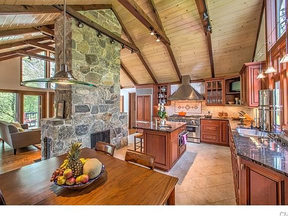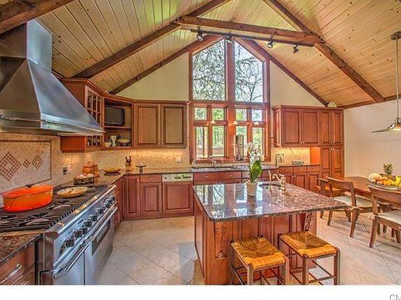 Are you looking for unique, beautiful & connect with nature right in town?This Contemporary Ranch is all that & more. Home has the perfect balance of soaring ceiling,beams, windows, sliders,& wall space. Multiple access to a 1000 sq ft deck keep the outside always in sight! Open concept,great flow; perfect for easy living &entertaining.Stone fireplaces in the kitchen,LR as well as FR and MB create a cozy atmosphere. Spacious eat-in gourmet kitchen w/ custom cabinetry. Lower level w separate entrance, full bath& 2 nice sized rooms is perfect for extended family, au pair. Bonus features are hot tub,herb garden, treehouse and seasonal pond.Many updates & improvements.Ample storage. Very special; they don't come along like this often.