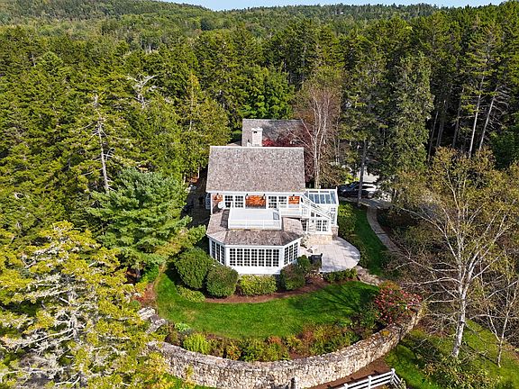 Introducing EAGLESMERE, a rare waterfront estate located on the coveted Orcutt Harbor in Brooksville. This year-round coastal cottage-style home is masterfully crafted and offers sweeping westerly views of the protected, deep-water harbor and ever-changing ocean panoramas. An enchanting property featuring thoughtfully maintained woodlands, meticulously landscaped grounds with vibrant gardens, a tranquil freshwater pond, and meandering walking trails with granite bridges, all spread over nearly 15 acres of unspoiled natural beauty. This sprawling home features 12 beautifully designed rooms, including four elegant bedrooms. Two of the bedrooms are ensuites, each featuring a gas wood stove for added warmth and ambiance. The other two bedrooms offer private bathrooms, with one also having the added charm of a gas wood stove for extra coziness. The property boasts a stunning solarium filled with natural light, a dedicated exercise room, and a remarkable office library, ideal for both productivity and relaxation. The home is designed to maximize its stunning surroundings, with large windows, tiered decks, and outdoor patios that are perfect for soaking in the natural beauty. A short path leads to 857 feet of deep-water frontage, complete with an extensive dock and multiple deep-water moorings. A sandy beach adds the perfect final touch to this spectacular property, making it an ideal retreat for both boaters and kayakers alike—a true haven for those who cherish life on the water! Ideally situated only 12 miles from the charming town of Blue Hill, offering easy access to shopping, dining, medical facilities, and other essential services. Conveniently located approximately an hour's drive from both Bangor International Airport, Acadia National Park, and Bar Harbor, providing easy access to key destinations. Arrange your viewing of this remarkable estate today.