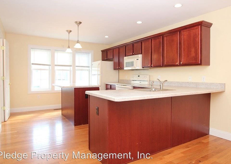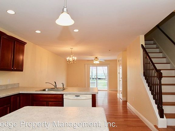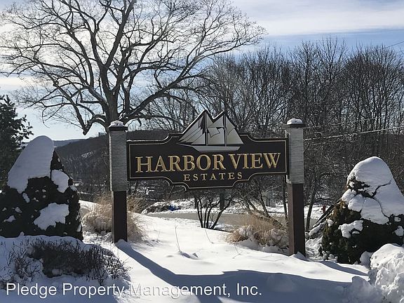 Spacious townhouse at Harbor View Estates Condominiums; open floor plan with hardwood floors; large eat-in kitchen with refrigerator, dishwasher, microwave and electric glass top stove central air conditioning, gas furnace and energy efficient features throughout; large bedrooms with cathedral ceilings and ceiling fan/lights; private back deck; drive under garage with utility room in back with washer and dryer hookups; photos are pre-tenant