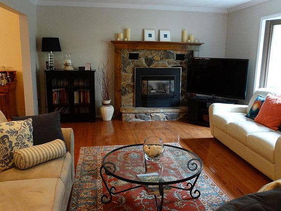 Private setting, close to town. Pristine and designed for comfort. Hardwood flooring and crown molding in living and dining room. Gas fireplace and dual gas heat and central air. Three bedrooms, two and one half baths. Two car garage. Screened and roofed rear porch. Open House - August 27 - 12:00pm to 1:30pm
