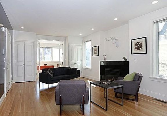June 1st - 2 beds, 2 baths, parking, laundry in-unit, central AC! On the edge of the Harvard campus, in the picturesque Agassiz neighborhood; a quick walk to transit at either Harvard or Porter Red Line. New construction in 2014 with 9 foot ceiling height and over 1,300 square feet of gracious interior space. Large second-floor apartment with open-plan living and dining plus a southwest-facing study behind a set of french doors. Flooring is solid rift-and-quartered wide plank white oak. Recessed lighting throughout. Imported Italian made oak cabinets in kitchen and baths. Bosch appliances. Cooktop is vented to the outdoors. High efficiency tankless hot water system and energy-efficient gas furnace. Central AC. In unit laundry with high quality Electrolux washer and dryer. The master suite has a walk-in closet and glass-enclosed shower. The second bathroom has a whirlpool tub. Harris Street is a private way. Parking for one car.