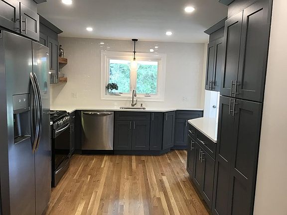 One of a kind EXTRAORDINARY EXECUTIVE RANCH featuring Attached Garage and Detached 37 x 24 four car garage (with toilet and sink) on over 29,000 SF wooded lot! All NEW quartz kitchen counter tops, all NEW stainless appliances, beautiful soft-close cabinets, gorgeous subway tile, and NEW oak flooring throughout. All windows NEW, NEW roof, NEW vinyl siding, NEW heat and central air, NEW plumbing and electric throughout. NEW tiled baths with all NEW fixtures and sliding barn door to lead you into Master Bath! Beautiful landscaping with all NEW lawn and fencing. NEW garage doors. Lots of interest already...Serious inquiries only please. FIRST OPEN HOUSE SEPT 1 from 11 to 1.