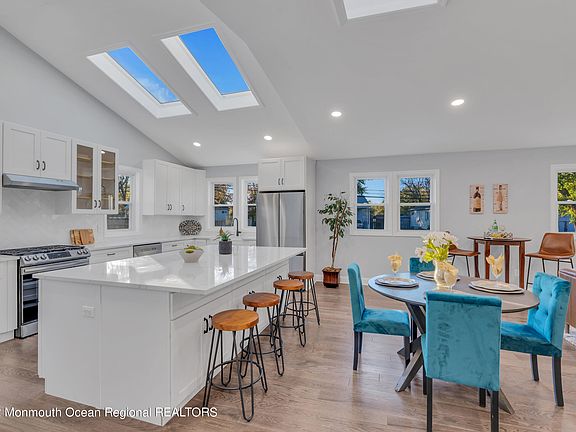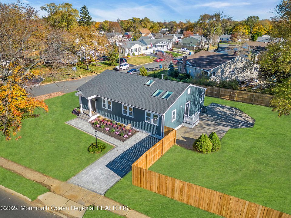 Welcome Home to this Exceptionally Expanded Hazlet RANCH! Opulent PAVER DRIVEWAY & Walkway meets your STONE Facade & FRESH Landscaping. TWO DRIVEWAYS, one on the side street for plenty of vehicle convenience. Open & Modern Lay Out featuring Hardwood Floors & 5'' Base Molding throughout. Beautifully Vaulted Ceilings in Main Living Area accompanied by 3 Skylights offering plenty of Natural Light. Lovely Gourmet KItchen w/ HUGE 42'' Cabinetry. 5X8 Calacatta Center Island perfect for Holiday Parties & Entertaining. SAMSUNG SS Appliances. HUGE Pantry w/ Pocket Door. Master Suite w/ Walk in Closet. FINISHED BASEMENT. FULLY FENCED YARD. NEW PLUMBING, NEW ELECTRIC, ROOF, WINDOWS & Totally Remodeled. This home is 90% New Construction. Drop Your Bags & Unpack! All for You, The NEXT Owner