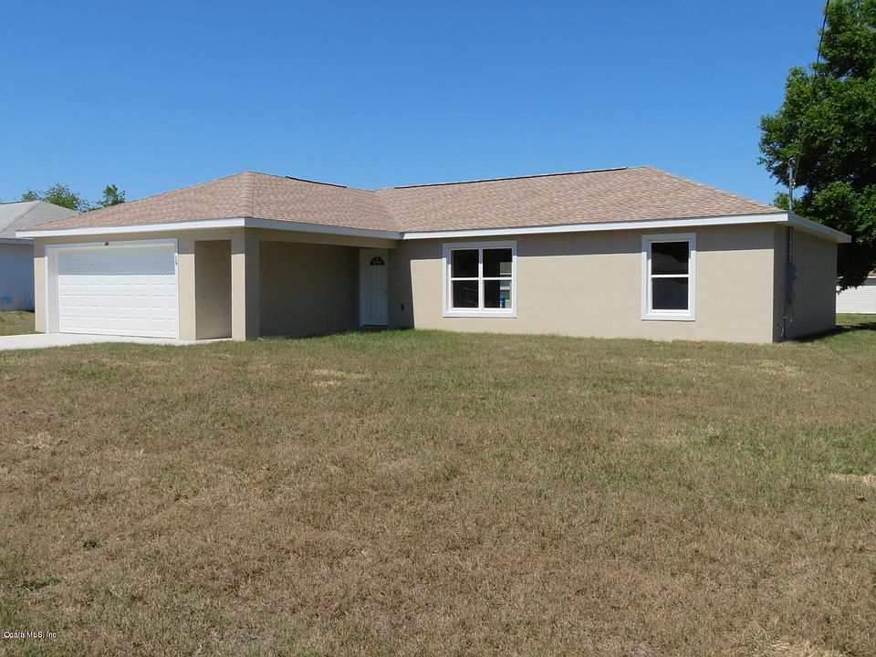This is the builder's Jen II 2017 model with an eat in kitchen and breakfast bar, open to the family room. It includes a SS appliance package and boasts a split bedroom plan with stunning choices for color and flooring. Photos may be from a different location and may contain slight differences or upgrades. Tile in the wet areas and carpet throughout the rest of the house are standard for this model. Close to shopping, golf, restaurants and medical facilities. A perfect starter home or retirement oasis.Builder provides a standard 2/10 home warranty and has several models to choose from throughout Marion County. Call for availability.