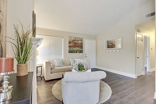 Welcome to This Pristine Town home, Upgraded and Remodeled, Ideally Located in the Desirable Mission Courts Community Just steps from the Beach Club. Situated on the Upper Level with no one below or above, and blessed with a Well-Designed Open Floor plan. Fabulous Upgrades and Superb Features including High Vaulted Ceilings, Beautiful Laminate Floors throughout, Extra Wide Baseboards, Custom Light Fixtures, Cozy Fireplace, Mirrored Closet Doors, Scraped Ceilings, Inside Laundry Area, and Upgraded Baths. This Newly Remodeled Kitchen with Sleek Modern Cabinetry and Hardware, Matching Stainless Steel Appliances, and Quartz Counter Tops. The Spacious Owners Suite has Vaulted Ceilings, 2 Closets, a Private Balcony, and an Upgraded Owners Bath with Framed Vanity Mirrors, Dual Vanity Sinks, Modern Hardware and Fixtures, and Upgraded Cabinetry. The spacious front patio is perfect for relaxing and entertaining. Also included is a 1 Car Detached Garage with Ample Storage. There is Only a Short stroll to Lago Santa Margarita Beach Club, walking distance to local schools and parks, recreation, shopping, entertainment, and dining. Outstanding RSM Amenities encompassing 13 picturesque parks, 9 community trails, 4 pools including 1 within Mission Courts, tot lots, sport courts, a lagoon, summer concerts, recreation programs and so much more.