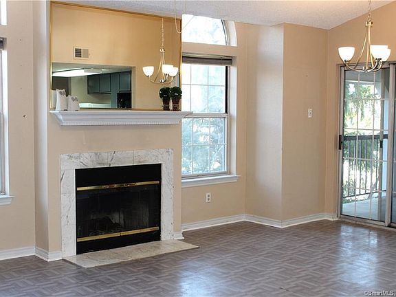 Great central location close to Pratt & Whitney, Goodwin College, and all major highways. Third floor ranch style 2br 2ba unit in move in condition. Living room with fireplace flanked by two story windows-perfect for relaxing on these chilly winter nights Open floorplan with the kitchen/living/dining areas connected is ideal for entertaining. Sliders lead out to balcony from dining area and offers private storage room. Large MBR with full bath, dressing area, double closets, and jetted tub. The second bedroom and full bath are in separate area and allow for privacy in unit. Washer and dryer off of kitchen. Fabulous complex with pool, gym, racquetball and tennis