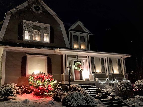 This much loved 1920’s Dutch Colonial has been meticulously maintained & updated throughout. The gardens have mature trees, a pergola w/private patio space & fish pond. Throughout this 4 bedroom and 2 bath home, you will find each room has original oak and maple trim & molding, hardwood flooring, original doorknobs with skeleton key locks. Formal dining room has a period built in China cabinet and a Parson's cabinet & fully functional pockets door for private dining. The Kitchen has granite counter tops, stainless steel appliances & ample cupboard space. Nearby, the maids bedroom has their own staircase to the 2nd level bedrooms. Library has custom built-in shelving, & adding ambiance & warmth to the room, a working brick fireplace with ornate brick molding & a bay window with a window seat. Living room has lots of natural light making this a cheery retreat & a pellet stove for those extra chilly evenings. The foyer and heated sunporch is Bright, cheerful and welcoming. The foyer leads to the 2nd level. The2nd floor bedrooms each have their own special features, including custom rounded door and window frames. The master bedroom even has a dovetailed floor. The 2nd floor bath has a pretty claw foot tub, for soaking and relaxing. There are too many features to mention about this beautiful home. Being at home nowadays is paramount to many, so waking up every day in this home, will awe you for years to come. Make this home your Castle!