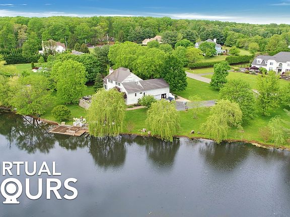 Every REX home comes with a 30-day buyback guarantee. Terms and conditions apply. Schedule your appointment with REX for a same day showing. Luxurious home in a park-like setting with 5 bedrooms, 3.5 baths, and 3,699 square feet in Manalapan! Situated on a beautiful pond, surrounded by gorgeous shade trees with a dock and expansive stone deck perfect for taking in the idyllic surroundings. The front entryway through the kitchen features black granite floors and a gorgeous formal living room with a dual-sided fireplace, vaulted ceilings, and beautiful windows that flood the space with light. The open kitchen has crisp white cabinetry, a giant center island with electric cooktop, stainless steel refrigerator and dishwasher, and an eat-in dining area with terrific water views. Off the kitchen is the home's inviting family room, complete with wood floors, elegant crown molding, and access out to the back deck. Two of the bedrooms are located on the main floor, including the spacious master, complete with vaulted ceilings and a sizeable en-suite with dual vanity, separate shower, and a giant jetted tub with tile surround. The remaining three bedrooms are located on the second floor and include large windows with amazing views, fan fixtures, and ample storage. Upstairs loft space perfect for a home gym, office, or game room. Downstairs is a large finished basement. Fantastic location near Charleston Springs Golf Course, Six Flags, Freehold Mall, and only thirty minutes to Jersey Shore beaches. *The current owners are at the end of a cosmetic renovation. The wallpaper in the living room, hallways, and loft area has been removed and areas are freshly painted. Don't miss your chance to own this one-of-a-kind home! Schedule a showing with REX today.