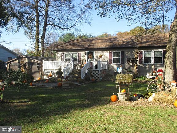 Rancher in Small Community Setting on over 1/2 Acre! Enter from the Front Porch into the Living Room with Pergo Laminate Flooring and Electric Fireplace. Kitchen has White Updated Cabinets, Stainless Steel Appliances, Granite Countertops, Island, Corner Cabinet ,Pantry Closet and Door out to a Two Tiered Deck. Following down the Hall to the Full Bath that has Alexa Fan/Light/Music, Updated Vanity with Granite Top and Shower/Tub Combo. The Spacious Primary Bedroom has Wall Closet & Ceiling Fan w/Light . Primary Bathroom with Alexa Fan/Light /Music, White Vanity, Stall Shower. Bedroom 2 Includes Laminate Flooring, Wall Closet, Built In Desk , Ceiling Fan w/Light & Hanging Chair. Bedroom 3 has Laminate Flooring, Wall Closet, Ceiling Fan w/Light and Attic Access with Pull Down Attic Stairs. The Lower Level has a Finished Rec Room with Laminate Flooring, Built In Shelving Under the Stairs, Ceiling Fan w/Light and Pellet Stove (that can heat the entire house). Den includes Laminate Flooring, Hanging Chair and Closet, Bedroom 4 includes Laminate Flooring. New Full Bath with Updated Vanity, Mirror & Light, Stall Shower and Barn Doors to Utility Area. Laundry Room with Washer, Dryer & Cabinets. Two Unfinished Storage Rooms (some shelving stays). Walkout Basement to the Covered Patio , Extra Eating Area with Hanging Wood Bar Tabletop & 4 Bar Stools , Stone Fire Pit, Seating Area, Picnic Area with Picnic Table, Extensive Gardens, Fish Ponds and Above Ground Pool. New Roof approx 8 years old, New Windows approx 4 years old, Hot Water Heater Brand New.