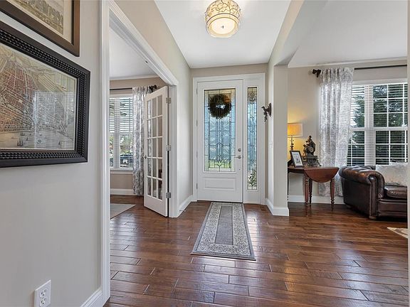 Located in highly sought after Ohmes Farm, this "Dream Home" is everything you have been looking for:5 bedrooms (possible 6th bdrm in lieu of media room), 3.5 baths, heaps of space to entertain both casually & formally, a proper home office, luxury kitchen w/hearth room w/stone gas fireplace. Off the kitchen, a covered composite deck leads down to a free form stamped patio.The 4-car garage (4th bay is tandem)features a workshop area & epoxy floors. Upstairs, a massive Master Suite awaits: a sitting/reading room, large bedroom w/coffered ceilings, master bath: standalone tub, separate tile shower, under cabinet lighting, double bowl granite vanity & HUGE closet w/built-ins galore. More upper level: laundry room with cabinets & granite countertops, 3 more bedrooms, a huge media/playroom/potential 2nd office & another full bath. Zoned HVAC, high end fixtures from Brizo & Kichler, scraped Hickory hardwoods, professional, partially finished basement w/plenty of storage room still available Additional Rooms: Mud Room