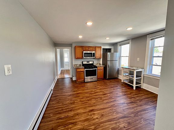 Heat, gas and hot water included. Stainless steel appliances. Large eat-in kitchen, dining room, ceiling fans in all bedrooms. Coin-op laundry in basement. Minutes from shopping and commuter rail. 2 parking spots off street. Please note layouts and colors will differ from pictures as they are for illustration purposes only. Heat, gas and hot water included. Stainless steel appliances. Large eat-in kitchen, dining room, ceiling fans in all bedrooms. Coin-op laundry in basement. A one time non-refundable deposit of $300 pet deposit required. 12 month lease which automatically turns to month to month after lease ends. Please note that Images may not reflect final appearance of apartment.