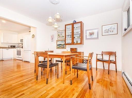 OHs; Friday, 5:30-6:30, Saturday/Sunday, 12-2. Rare to the Cambridge market, this 4-level attached contemporary single family, built new in 1995. Foyer leads to an open floor plan for the fully hardwood flooring on the main level; living room with pellet stove, dining room and kitchen. Second level features three bedrooms all with slider closets, wall-to-wall carpeting, and a full bath. One bedroom has a cedar closet. The third level features the master bedroom with two closets, sky light, ceiling fan, and full bath with a double vanity/sink. Lower level provides a large room for family/office space, the washer-dryer, and storage. Gas heat, with 2016 heating system, 4 zones, updated kitchen w/granite counters, patio and two tandem parking spaces. Floors were refinished in 2013.