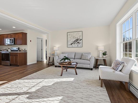 Welcome to this beautifully crafted brand new 3 bedroom, 2 bath home, offering easy one-floor living in a peaceful wooded setting. Inside, you'll find a bright and inviting open concept layout, designed for both everyday comfort and effortless entertaining. The spacious kitchen features warm cabinetry, stainless steel appliances, a center island with seating, and plenty of counter space; ideal for cooking, gathering, and staying connected with the living and dining areas. Natural light fills the space from every angle, highlighting the clean finishes and fresh, modern feel. The primary suite offers its own full bathroom and ample closet space, while two additional bedrooms and a second full bath provide flexibility for guests while offering the split floor layout for added privacy. A dedicated mudroom/laundry area adds to the home's convenience right from the driveway with space to add a garage! Set on a newly established lot surrounded by trees and abutting common subdivision land (that can't be built on), this home delivers privacy with a quiet, country feel; yet you're still close to everyday amenities. Everything here is brand new and ready for you to enjoy from day one. A comfortable, low-maintenance lifestyle is waiting. Move in and make it yours today!