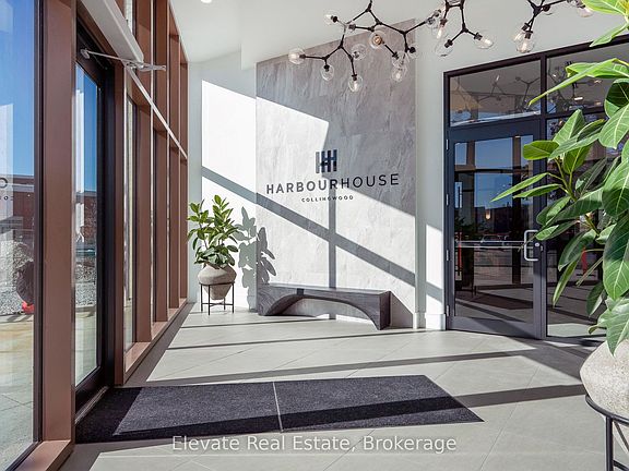 Experience refined luxury at Harbour House, Collingwood's most anticipated new waterfront residence. This brand-new fully upgraded corner suite showcases uninterrupted views of Georgian Bay, the historic Collingwood Terminals, and the Blue Mountain Escarpment. Offering 930 sq. ft. of elegant living space plus a 100 sq. ft. balcony, this 2-bedroom, 2-bath suite blends modern coastal design with exquisite craftsmanship. Features include 9-ft ceilings, a quartz waterfall island with matching backsplash, 2'x 3' stone tile flooring, custom built-ins, marble window sills, zebra blinds, a hidden dishwasher, and an integrated security system. Every element has been thoughtfully curated for the discerning resident seeking comfort, sophistication, and effortless style. Enjoy resort-inspired amenities including a fitness studio, guest suites, secure fobbed entry, heated underground parking, and a private storage locker. This professionally managed suite offers an elevated, worry free living experience for refined tenants. The building's Scandinavian-inspired architecture captures the essence of Collingwood's four-season lifestyle - where nature, design, and convenience meet. Located steps from fine dining, boutiques, trails, and the waterfront, and minutes from Blue Mountain, golf courses, and beaches, this is Collingwood's premier address for executive living. Perfect for professionals, retirees, or anyone seeking a sophisticated home base in Ontario's most vibrant four-season destination.