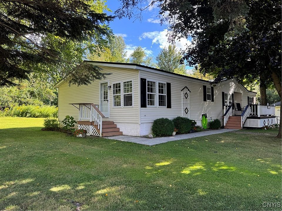 Beautiful manufactured home well maintained. Immaculate condition. Located on a nice double lot landscaped quite a few mature trees.park like setting.Move in condition.Home is built to modular standards The home has vaulted ceilings.Lot rent is 610 per month includes water,school/county taxes included in lot rent. Owners don’t own the land.New steel roof in 2025.has a transferable warranty.Big kitchen with lots cabinet space. 3 bedrooms,2 full bathes. Detached two stall garage w/new roof.Circular paved driveway. Close to Watertown. Homeowners are responsible for gas,electric and trash removal.