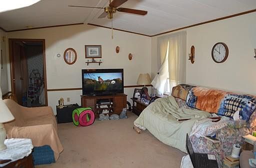 Older manufactured home in Rocky Knoll 55+ Park. Unit backs up to woods and has a shed. Two bedrooms and baths.