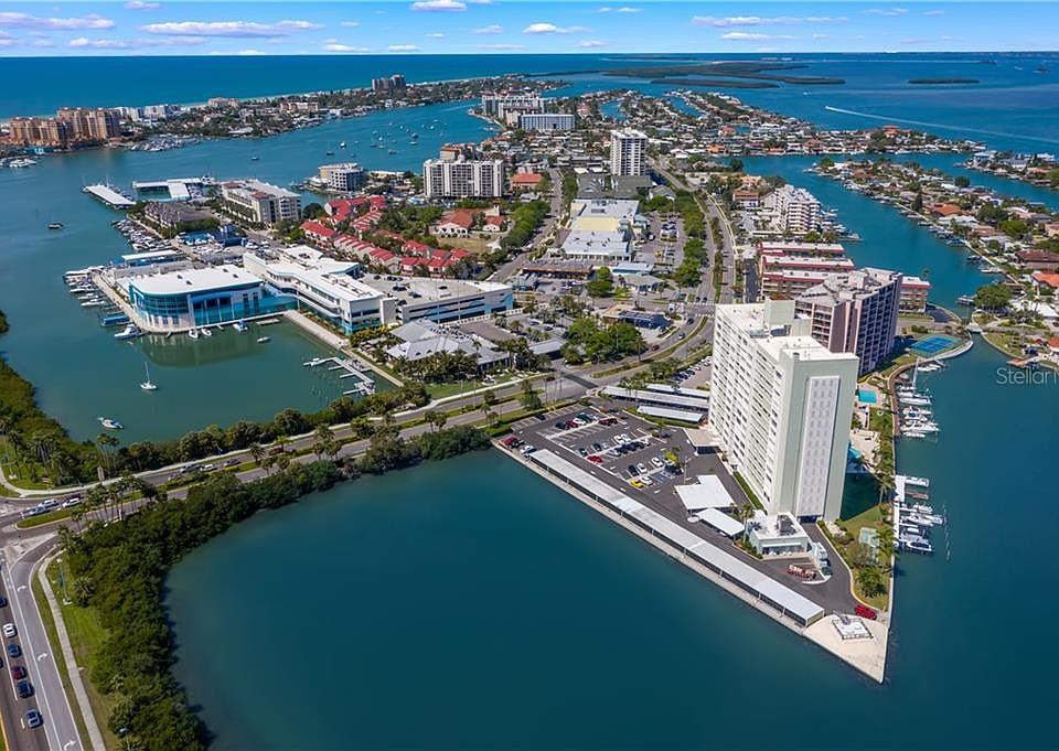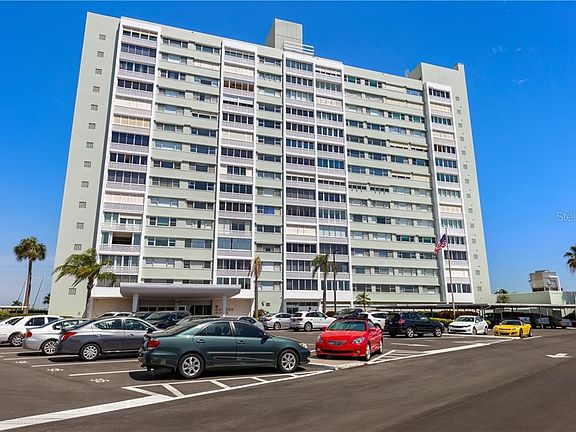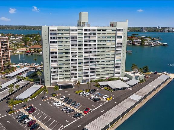 BREATHTAKING WATER VIEWS FROM THIS TOTALLY RENOVATED CONDO! Step into this gorgeous spacious 2 bed 2 bath condo with one of the most amazing West facing views of the Gulf of Mexico and Clearwater Beach. Enjoy nightly breathless sunsets through your NEW floor to ceiling & wall to wall hurricane rated glass sliding doors. Cook in your BRAND NEW KITCHEN with high end solid wood cabinetry complete with lazy-susans, soft close doors and quartz counter tops. Quality stainless appliances. All rooms enjoy the gorgeous water views with wall to wall windows. The large owners retreat located at the end of the hallway for privacy and has plenty of room for king size bed, nightstands, dressers and has a custom built in shelving. Step into your ensuite with frameless glass shower door, lots of counter space, plenty of light and a large closet. The large guest bedroom has wall to wall water view windows, large closet and ceiling fan, and it is conveniently located across from the guest bath with tub/shower combo. This home has many quality features & designer touches including custom diamond plate aluminum hallway ceiling, luxury vinyl plank flooring, new doors and hardware and new paint. The Community manages everything on your behalf with monthly fees that include Electricity, Water, Sewer, basic cable, Trash, Building Maintenance, Doorman, Property Manager, Insurance, Air Conditioning and Water Heater maintenance. Enjoy the amenities including a well maintained grounds, large heated pool, shuffleboard, community BBQs, modern lobby, library, community meeting room and private on floor storage locker. The building is located at the start of Island Estates just a short 10 minute walk to the Beach, across the street to the award winning Island Way Grill restaurant, mins from the new Publix Grocery store, the Windward Bar & Grill, Sushi restaurant, UPS store, bank, convenience store and the Clearwater Marine Aquarium. Welcome to Island Living at its best in your own peace of paradise.