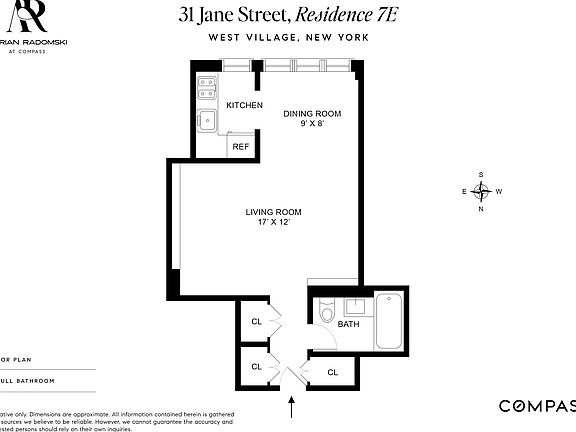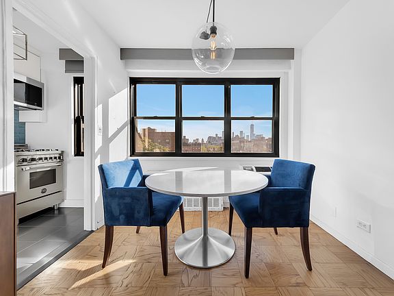 As you enter the home through a generous entry foyer with closets, you're immediately greeted by a wall of south-facing windows that fills the living and dining area with all-day natural light and charming Village views, including a striking vantage point of the Freedom Tower and downtown skyline.