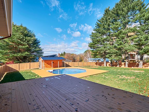 Gorgeous Brick Contemporary Multi Level Home in a great location with an extra large in-town double lot. Large paved driveway and a large, private, fenced back yard with an In-ground pool, a deck and a pool house. The first floor offers an entry room that flows into the kitchen and the large, open dining area and living room with wood burning fireplace. Freshly refinished hard wood floors and stone facade on the fireplace. The hip and modern master suite with gorgeous tile and glass shower and large walk in closet is also on the first floor. The second level offers 3 bedrooms and another full bathroom. Very clean and nicely kept 2 car garage and large basement for storage with one finished room and a half bath.