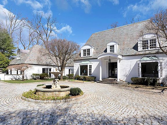 3.72 Acres in Mid Country Beautifully set back with a long driveway lined in Belgian block into a spectacular stone paved, circular courtyard with a center fountain, this handsome brick home with a slate roof has a serene heated pool and a spa on this incredibly private property of 3.72 acres with views Khakum Wood off Round Hill Road in mid country is the beautiful and sought after enclave with private security. The scenic lanes and landscaping were designed by the legendary architect Fredrick Law Olmstead of New York Central Park fame which was only one of his amazing designs. A handsome arched portico shelters the double front doors opening into the splendid center hall with a grand curving stairway and lovely herringbone oak floors. The generous living room with a fireplace has a large bay window with french doors to a long terrace at the rear; the formal dining room also has a wide bay window and lovely detailing. The richly panelled library with many bookcases has a fireplace bracketed by french doors to the terrace. A second den and a sitting room/ study also has a bay window. The uxurious master suite with a large dressing room and major closets has a wonderfully renovated athroom with a Whirlpool tub and a separate shower. The heart-of-the-house for daily living is the superb family room/gourmet kitchen with a double height, beamed ceiling, and an upstairs balcony with windows, plus a large center island, a fireplace, french doors to the terrace and access to the mudroom, the elegant laundry room and the three car garage. There are six bedrooms with six lovely bathrooms, a large studio or staff wing with a high ceiling and a bathroom and front and back stairs. The huge lower level has a panelled exercise room and a family room with a wet bar or soda fountain complete with chocolate or butterscotch dispensers, a pool bathroom, a wall of glass doors to the pool terrace surrounding the inviting pool and spa with lovely landscaping including a superb cut leaf Japanese maple tree.