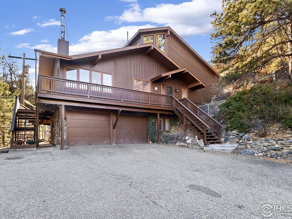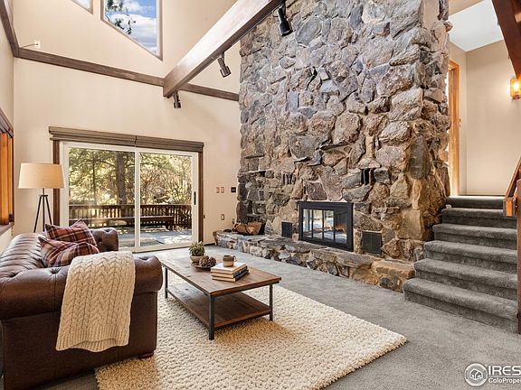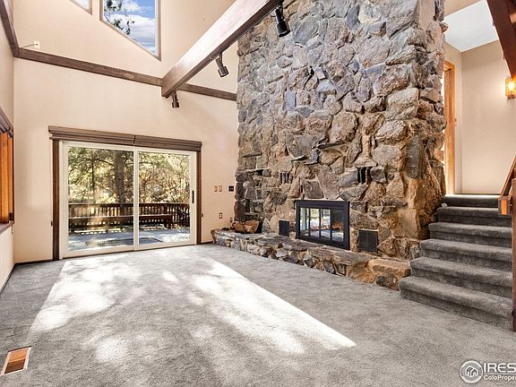 Over 7 acres of mountain living where peace and scenery take center stage! Set against Colorado's natural beauty, this expansive property offers rolling land and forested surroundings where the only sounds you'll hear are the rustling wind through the pines and the gentle presence of local wildlife. Located just 17 miles from Old Town, this home sits just across from the Cache La Poudre River and also features a seasonal stream from Boyd Gulch Creek. Inside, the spacious floor plan showcases elegant design details, soaring ceilings, and exposed wood beams that add a timeless mountain-lodge feel throughout the home. Numerous upgrades have been completed over the years, including new carpeting, refinished wood floors, upscale blinds, updated sliding glass doors, and more. The living area is centered around a floor-to-ceiling stone fireplace with a unique water feature, creating a striking focal point that's visually stunning. The kitchen features modern appliances, a generous island with ample prep space, and pullout cabinets, allowing for everyday ease and effortless hosting. A charming breakfast nook with a classic wood stove offers the perfect spot to start the day, while a separate dining area provides space for more formal gatherings. Two bedroom suites offer comfort and flexibility. Each room includes its own ensuite bath, with the primary standing out thanks to a spacious 5-piece bath and direct access to the stone patio just outside. A sun-filled loft overlooks the main living space and provides flexible possibilities, plus a bonus room that works well for storage. Downstairs, the basement features a recreational area with a brick fireplace, plus a 3rd bedroom that adds flexibility to the overall layout. An expansive wraparound deck invites you to enjoy sweeping views of your acreage, whether it's for quiet mornings, sunset evenings, or stargazing nights. The attached two-car garage includes a built-in workbench, ideal for projects. No HOA!