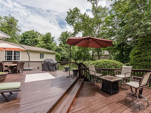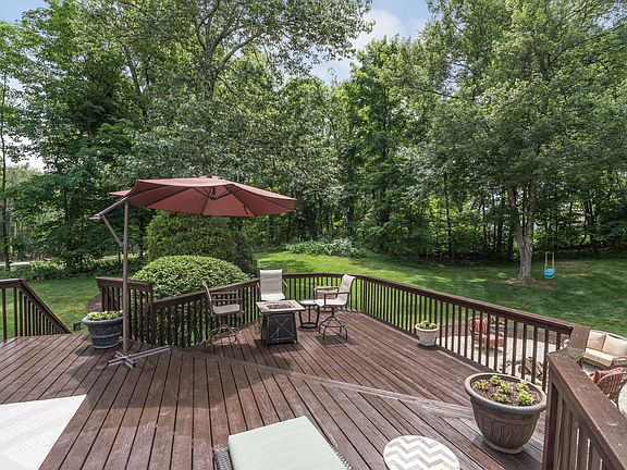 Exceptional 4/5 bedroom 3 full bath stunning home in desirable Brookfield community. Attention to detail throughout with many recent high quality custom updates. Luxury styled living in the casual yet elegant open floor plan. Updates include brand new central ac unit, new Burnham furnace with 3 zones, hot water heater, well pump, thermopane windows, vinyl siding and architectural roof. Impressive eat in kitchen with granite counters, breakfast bar, tiled backsplash, stainless steel appliances & recess lighting. Bright open floor plan flows into the main level family room and dining area which walks out to the sprawling deck and backyard perfect for entertaining. Generous family room hosts beautiful trey ceilings, Armstrong flooring & ceiling fan. Main level boasts a large formal living room & dining room with polished hardwood flooring. Special features include six panel doors, custom trim, wainscoting, updated baths, decorative lighting & fresh neutral paint. Master bedroom suite is enhanced by a full master bath, walk in closet and hardwood styled flooring. Additional bedrooms have ample closets and wall-to-wall carpeting. Enjoy the capacious lower level complete with game room, bonus room with brick corner fireplace and additional den which is being used as 5th bedroom currently. Nothing to do here...move in condition home! Come enjoy the custom stone fire-pit, relax on the sun drenched deck and appreciate all the upgrades this home has to offer! Must see to appreciate.
