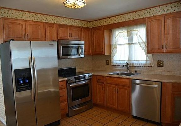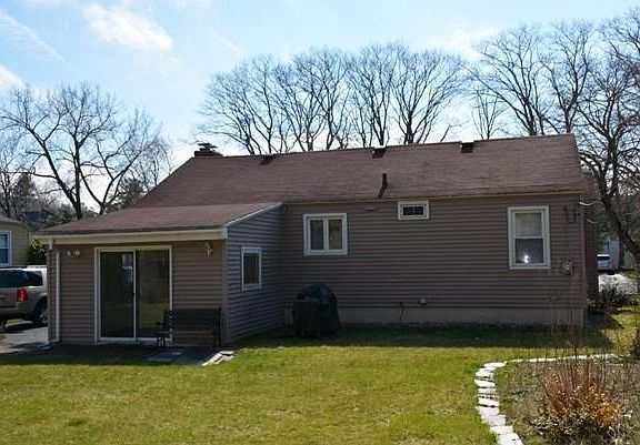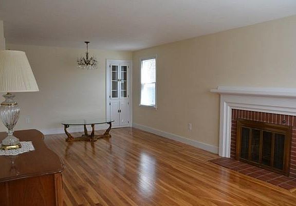 Ranch house Located in a quiet neighborhood with level lot abutting protected arboretum. Finished basement with carpeting perfect for family room, additional bonus room, and bathroom. Paved driveway for 4 cars. House is vinyl sided with vinyl replacement windows. Steam heat by oil. Municipal water and sewer.
