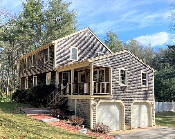 Spacious Garrison-style home has been well cared for by the original owners, featuring a large first floor addition providing a full kitchen with an island, cozy, covered front porch entrance and a 2-bay heated garage under. The main level also features a generously sized dining room, large living room with working fireplace and sliders to the backyard, additional sitting room, 1/2 bath, large laundry room w/ample storage. Second floor offers 4 bdrms and full bath with tile floor and jacuzzi tub. This property is situated on a gorgeous wooded lot, open on only one side, the property includes a long private driveway leading to the home set back into the backyard summer-time retreat, featuring a fenced-in in-ground pool with a patio surround, storage shed, and gazebo seating area. Located in the tucked away cul-de-sac neighborhood of Lady Slipper Circle in Pembroke. Newer heat system under 10 years old. Tilt-out Anderson windows. house-length pull-down attic for storage. generator hookup