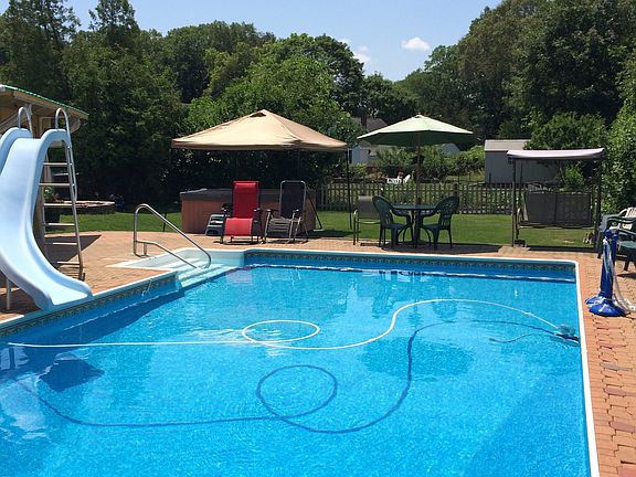 Recent Updates include new septic , freshly painted interior, 200 amp electric service and so much moreYou will enjoy all the seasons in this well-cared for, one level, 3 bed Ranch with Central air, extra wide propane/gas fireplace (could easily be converted back) for those cold winter nights. All updated thermo-pane windows fully insulated and inspected by RISE, worry-free vinyl siding. The Enclosed glass and screen porch on the back has become a favorite place to enjoy your private yard. Enjoy your in-ground 16 x 36 Saltwater Solar heated Pool with an auto vacuum. Beautiful backyard with covered Lanai, yard irrigation sprinklers with Auto Bug ( all natural cedar mosquito and tick control). The backyard is fenced and private. All rooms have been updated with care and hardwoods throughout the main living area. The lower level is presently a music room and party dry bar with new carpeting. T If you have never had a saltwater SOLAR heated pool you will Love this one! Clean and easy maintenance. Brand new septic!The driveway is extra wide ( the whole band could park there) for the company and there is also 22x26 2-car garage. Across the street is Saw Mill Pond. Very Convenient Location.