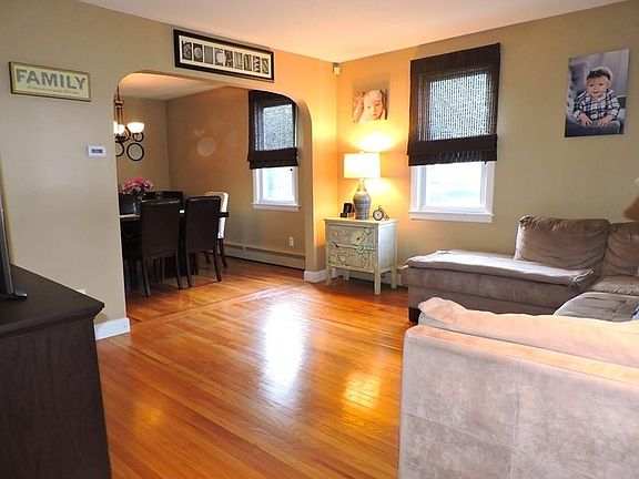 Charming, updated and move-in ready cape style home - perfect for those starting out or downsizing! The first floor features an open living & dining room with hardwood floors. eat-In kitchen, full bath, and a first floor master bedroom! The second floor has two additional bedrooms with hardwood floors and a second zone for heating. The full basement has another full bathroom & laundry. A cute enclosed 3 season porch, a detached 1 car garage, and a picture perfect flat backyard complete this adorable home set on a dead end street. The entire home has also been freshly painted! Put this one on your list before it's gone!