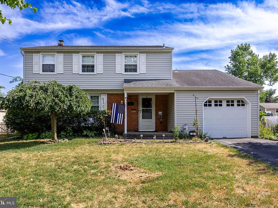 Welcome to this charming 4-bedroom, 2.5-bath colonial nestled in the lovely Knollwood community. This home exudes warmth and character, offering a perfect blend of classic design and modern amenities for a comfortable and convenient lifestyle. As you step through the tiled entryway, you’re greeted by a spacious living room on your left, where a large window floods the space with natural light. The rich hardwood flooring throughout adds a touch of elegance and seamlessly flows into the formal dining room, perfect for hosting gatherings with family and friends. The heart of the home lies in the inviting kitchen, featuring recessed lighting, pristine white appliances, an electric range, a tasteful tile backsplash, and ample oak cabinets for all your storage needs. It also features plenty of counter space and a large dining area. The kitchen then opens up to the cozy family room, with laminate flooring and recessed lighting, creating a warm and welcoming atmosphere. The half bathroom and access to the one car garage are conveniently located off the family room. There is also access to the backyard patio here, where you can enjoy alfresco dining in your fully fenced yard, offering both privacy and space for outdoor activities. Upstairs, the spacious primary bedroom boasts hardwood flooring, two closets, and a ceiling fan to keep you comfortable year-round. The en suite bathroom features a pedestal sink, a stand-up shower, and a clean, tiled floor and shower surround, providing a serene retreat. The additional three bedrooms also feature hardwood flooring and ample closet space, ensuring comfort for the whole family. The hall bathroom is designed with white tile, a vanity with double sinks, and a clean tub with a tile surround, catering to the needs of everyone in the household. The basement offers plenty of storage space and is equipped with a washer and dryer and a workbench. Although unfinished, it provides a clean and functional space for your laundry and storage needs. Additional highlights include a roof installed in 2015, ensuring peace of mind for years to come, and a new water heater replaced in 2020, adding to the home’s reliability and efficiency. Located in a fantastic neighborhood, this home is just moments away from top-rated schools, shopping centers, dining options, movie theaters, and recreational amenities such as a bowling alley. With easy access to major highways like Route 70 and I-295, commuting is a breeze, making this home an ideal choice for busy families. Don’t miss the opportunity to make this delightful colonial your forever home. Schedule your private showing today and experience the charm and convenience of living in the Knollwood community!