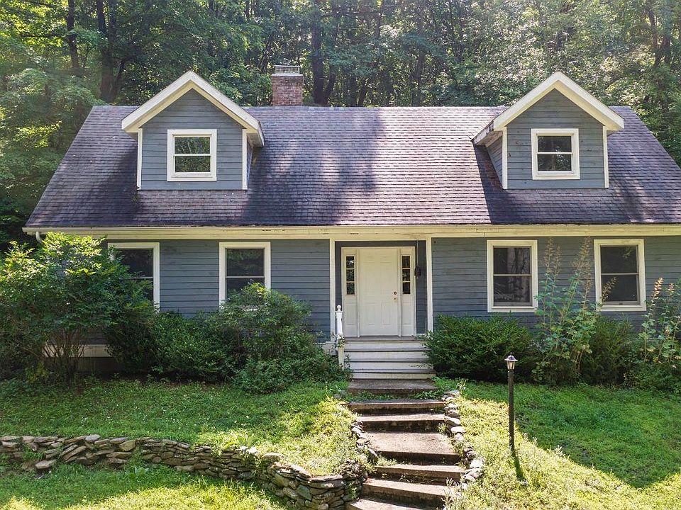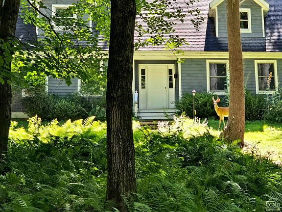Charming 3 bedroom country cape nestled on 4 private acres. Fantastic location -off a quiet town maintained dead end dirt road just a few miles from the quaint hamlet of Spencertown and in the Chatham School District. Spacious rooms with lots of natural light. Hardwood floors through out. Primary bedroom with ensuite bath on the first floor. Kitchen overlooks a beautiful sunroom with a wood burning fireplace & large windows that view over the stone patio- bringing the outside feeling in. A spacious dry basement with a workshop area, office and den. New mechanicals. 2 car garage, woodshed and gazebo. Absolutely beautiful land lined with stonewalls, hardwoods and ferns. A magical setting to get away from it all with an easy 2.5 hour drive from NYC, 20 minutes to Hudson and 15 minutes to Gt. Barrington.