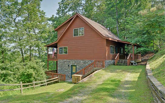 ~Heaven in the Skies~ Escape to your own fully furnished mountain cabin with long range mountain view, conveniently located between Ellijay and Blue Ridge. This 3 bedroom cabin plus loft sleeps 8+ guests and features upscale rustic furnishings including log beds, leather sofas, antler and wrought iron fixtures, log railing, granite in kitchen and all baths, and an all wood interior. The finished lower level includes a 3rd bedroom and media room with poker table. 2 levels of decking also feature outdoor fireplace and hot tub. In current successful vacation rental program with proven history and income.